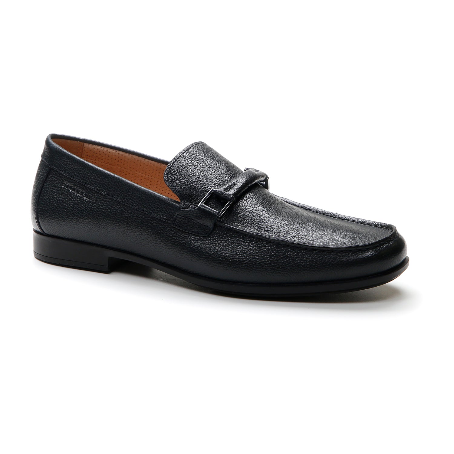 Men's moccasin in black embossed leather with a regular fit. A moccasin that is comfortable and practical but at the same time elegant: a timeless model designed to combine comfort and refinement, embellished by the detail of the tone-on-tone horsebit. Blusoft® technology offers soft and light steps like a cat's, with an inimitable level of comfort and cushioning. Rubber sole, heel height (cm): 2.