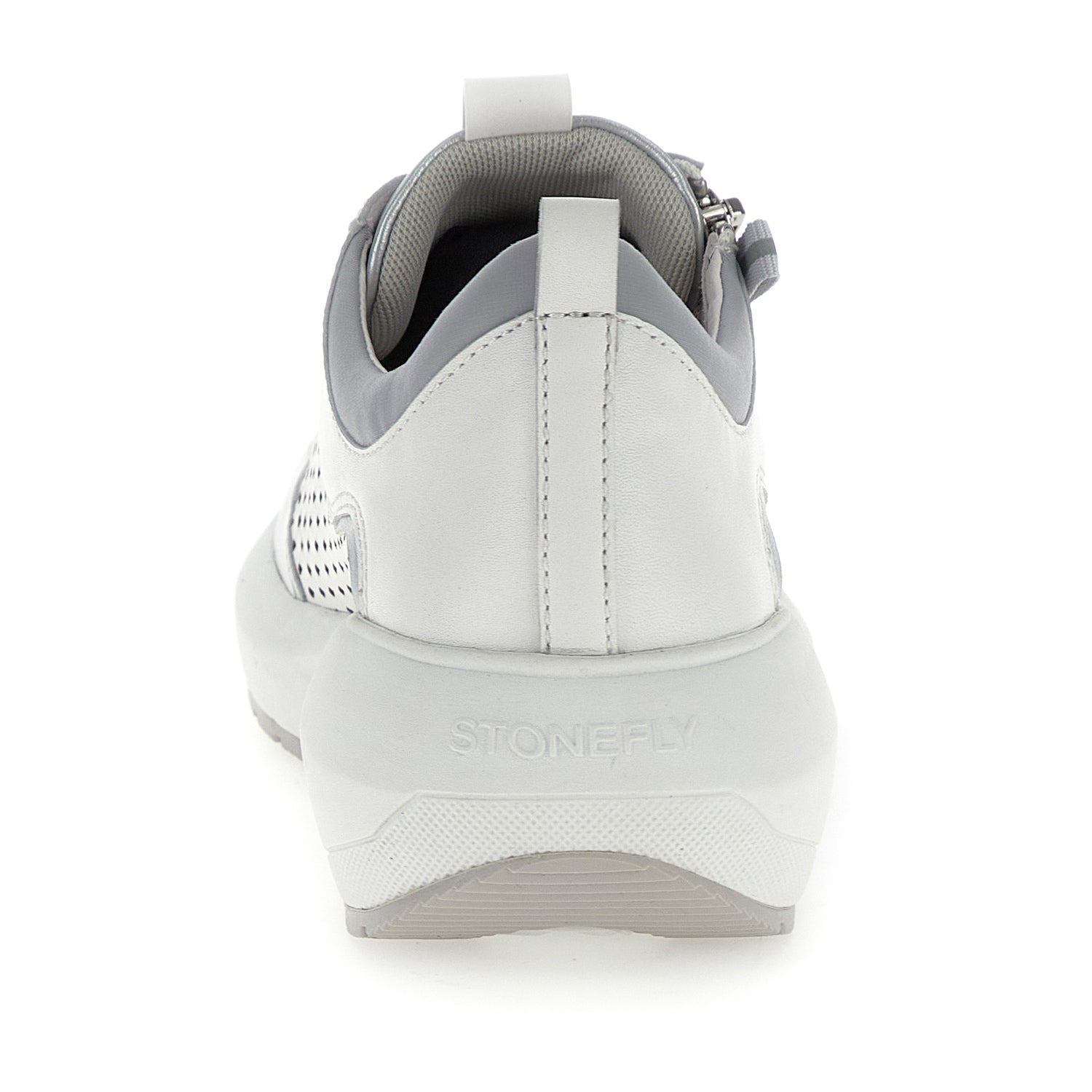 Zapatilla casual de mujer en napa blanca con corte regular. Un modelo con un look moderno y casual chic, caracterizado por una parte superior perforada y una práctica cremallera lateral que facilita el ajuste. Perfectas para combinar estilo y funcionalidad en cualquier ocasión, las zapatillas TWINS representan la combinación perfecta de comodidad y estilo. La zapatilla con Blusoft Memory® tiene una plantilla extraíble especial equipada con un inserto de espuma viscoelástica en la zona del talón que amortigua los golpes de la marcha. La plantilla está construida con un material especial con una estructura de célula abierta que garantiza una transpirabilidad muy alta. Suela de EVA, altura del tacón (cm): 4,5.