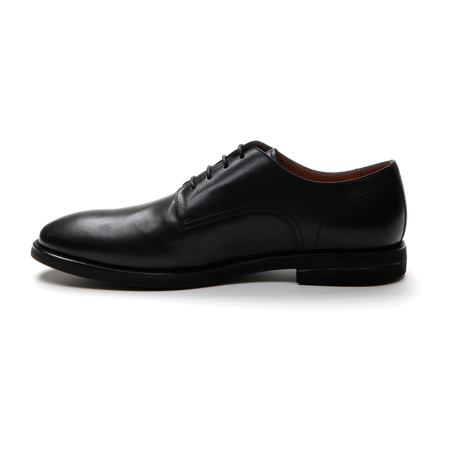 Men's derby stringed shoe in black leather, regular fit. Comfortable and elegant, with a shiny-finished upper, it is the perfect example of a refined and timeless shoe that guarantees a comfortable fit even for the most formal occasions. Blusoft® technology offers soft and light steps like a cat's, with an inimitable level of comfort and cushioning. EVA sole, heel height (cm): 2.5.