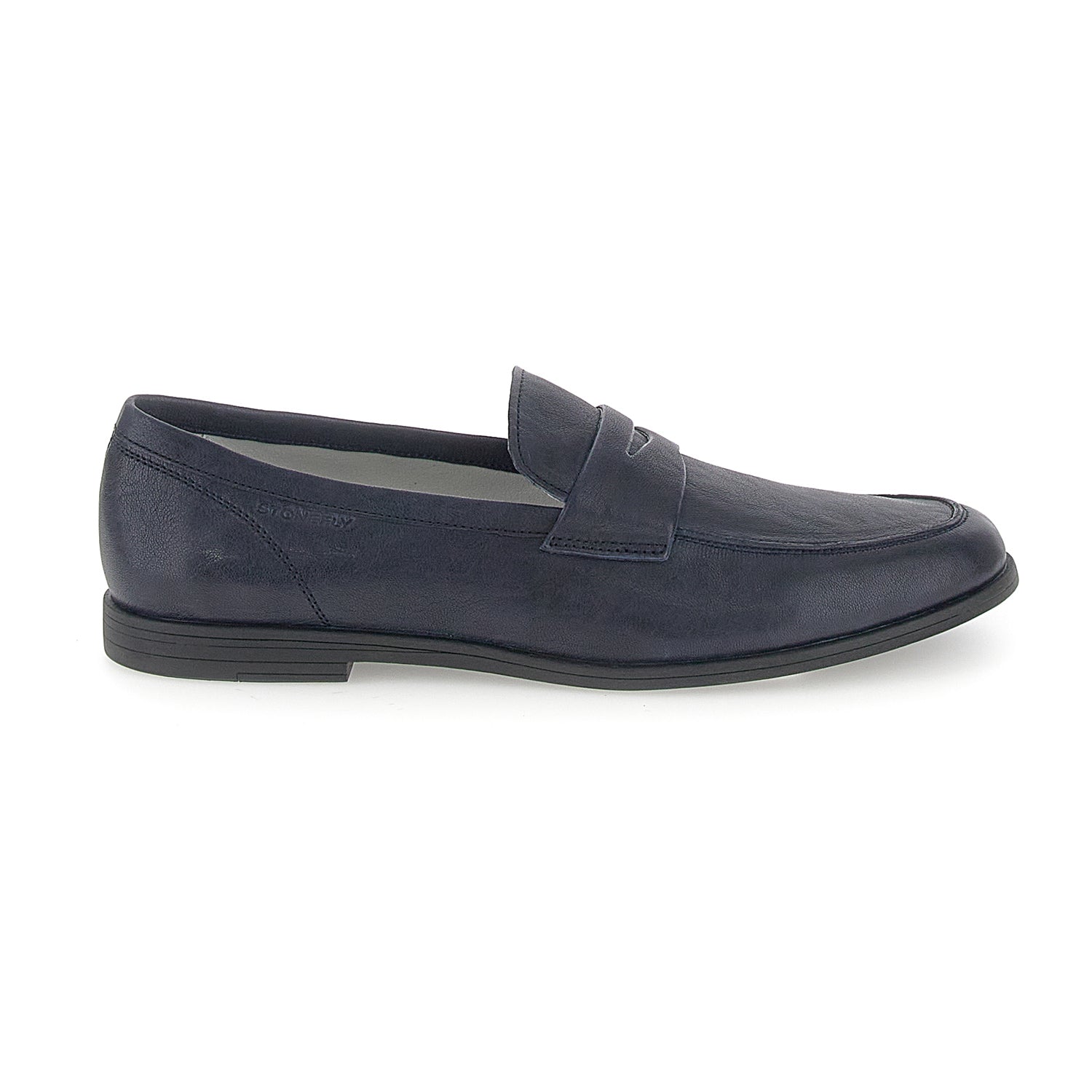 Men's moccasin in blue leather, regular fit. Upper in soft leather and light bottom with non-slip tread. Comfortable and practical but elegant penny loafer: a timeless model designed for the comfort of the foot. Blusoft® technology offers soft and light steps like a cat's, with an inimitable level of comfort and cushioning. rubber sole, heel height (cm): 2.
