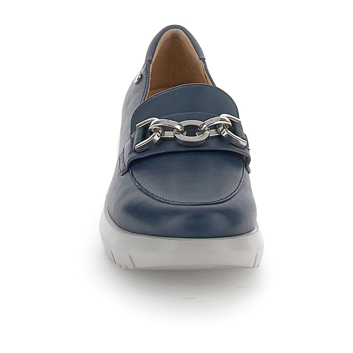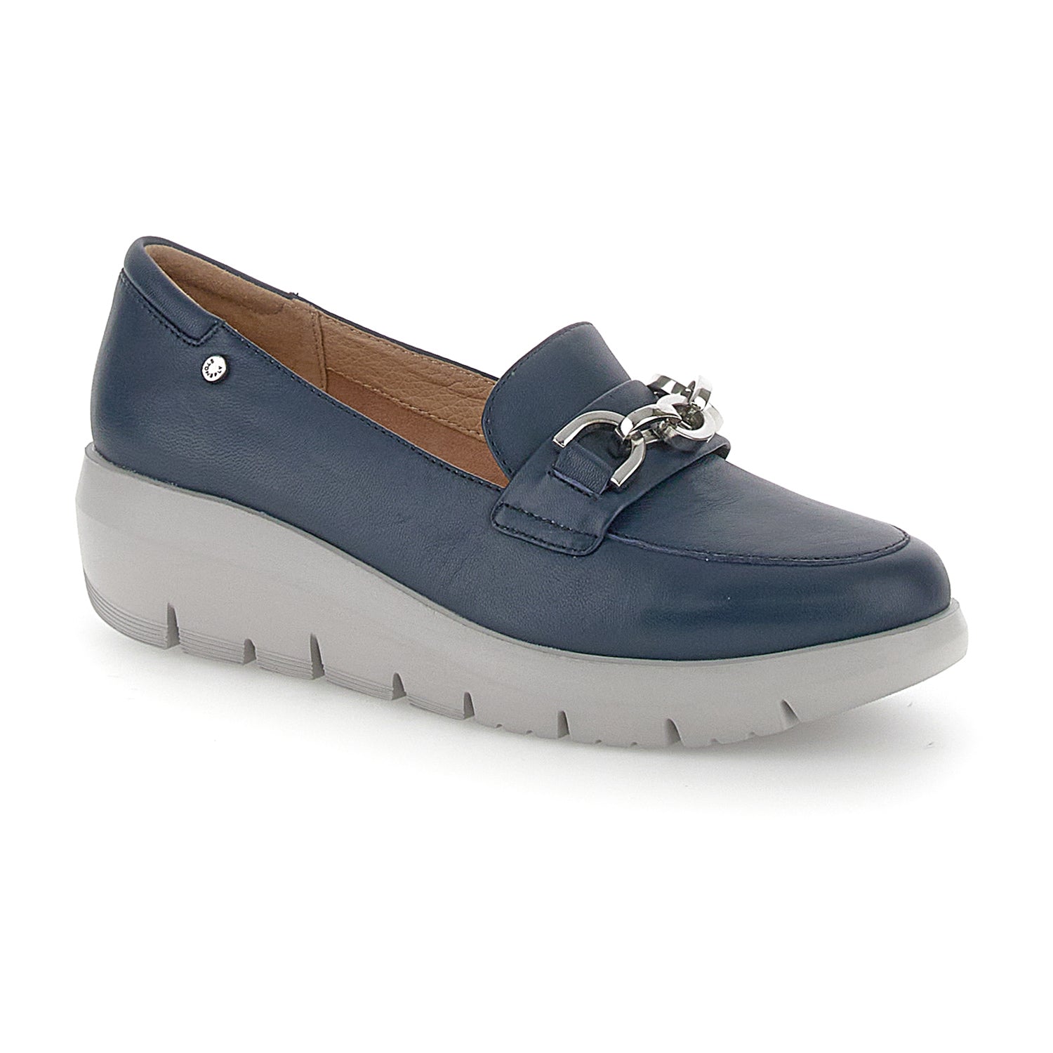 Women's moccasin in blue nappa leather, regular fit. Upper with patch and metal horsebit. All the comfort of the Plume line combined with a classy design, for an impeccable style to wear all day. Blusoft® technology offers soft and light steps like a cat's, with an inimitable level of comfort and cushioning. EVA sole, heel height (cm): 4.5.