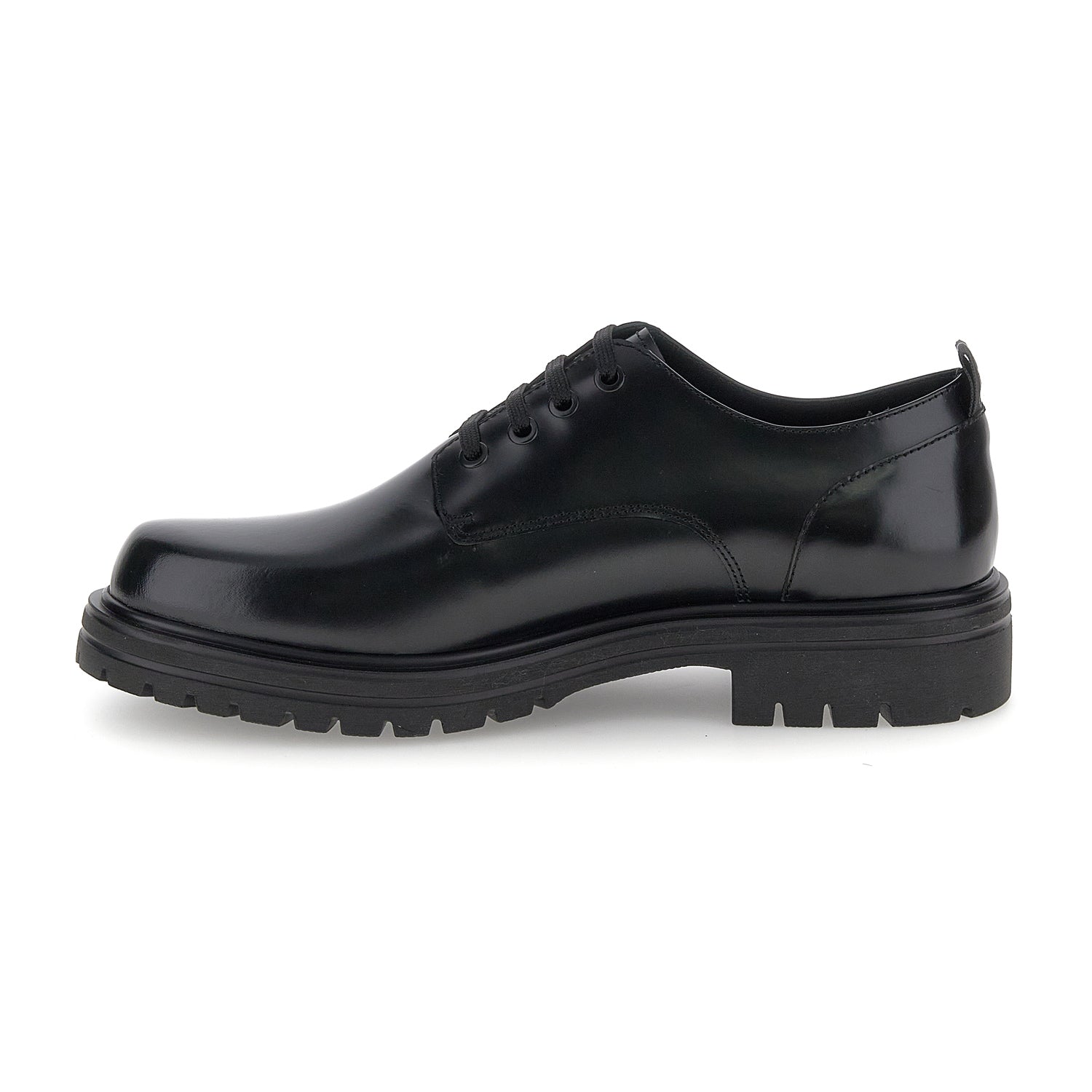 Zapato derby para hombre en cuero cepillado negro con ajuste regular. Un modelo clásico y atemporal que incorpora elegancia y sofisticación en cada detalle. Perfecto para las ocasiones más especiales, este derby combina un diseño sofisticado con una comodidad excepcional. Ya sea para un evento formal o una noche elegante, este modelo es la elección ideal para quienes buscan un toque de clase para completar su conjunto. El calzado con Blusoft Memory® tiene una plantilla extraíble especial equipada con un inserto de espuma con memoria en la zona del talón para amortiguar los golpes de la marcha y construida con un material exclusivo con estructura de celdas abiertas que asegura la máxima transpirabilidad. Suela de PU, altura del tacón (cm): 3.5.