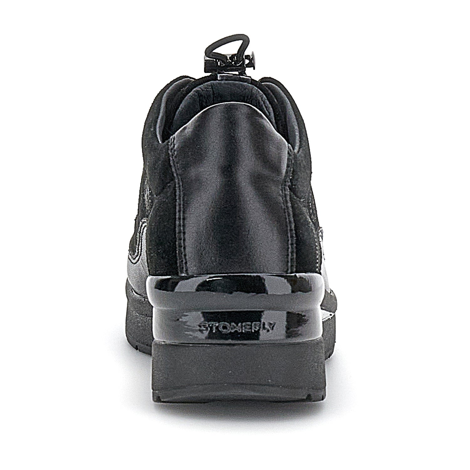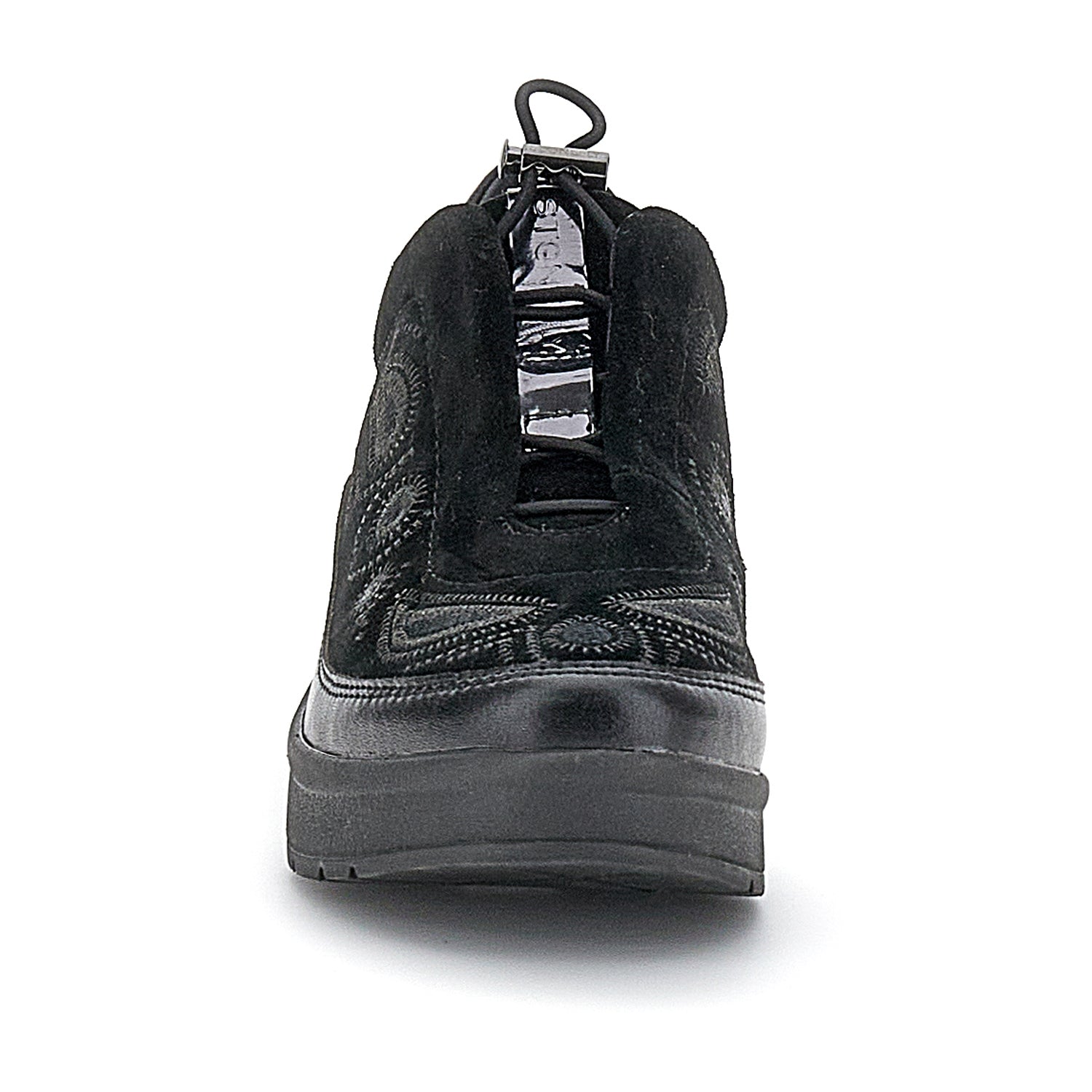 Zapato sin cordones para mujer en ante y piel sintética laminada negra con corte regular. Con una parte superior suave adornada con detalles bordados, este modelo sin cordones es extremadamente cómodo y versátil, perfecto para acompañarte con estilo y ligereza en todos tus días. El cierre con cordón hace que sea más fácil y rápido de poner para una máxima comodidad. La tecnología Blusoft® apoya su caminata asegurando la máxima comodidad y amortiguación. Suela de EVA, altura del tacón (cm): 5.