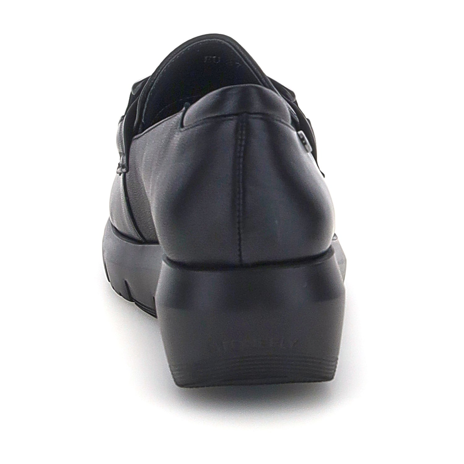 Mocassino da donna in pelle verniciata nera con vestibilità regular. Questo modello combina perfettamente la comodità della linea PLUME, caratterizzata da una suola confortevole e voluminosa, con l'eleganza e la classe del mocassino. Le linee semplici sono impreziosite dall'accessorio a catena, che conferisce un tocco sofisticato e ricercato a una calzatura versatile e alla moda. La tecnologia Blusoft® supporta la tua camminata garantendo massimo comfort e ammortizzazione. Suola in EVA, altezza tacco (cm): 4.5.