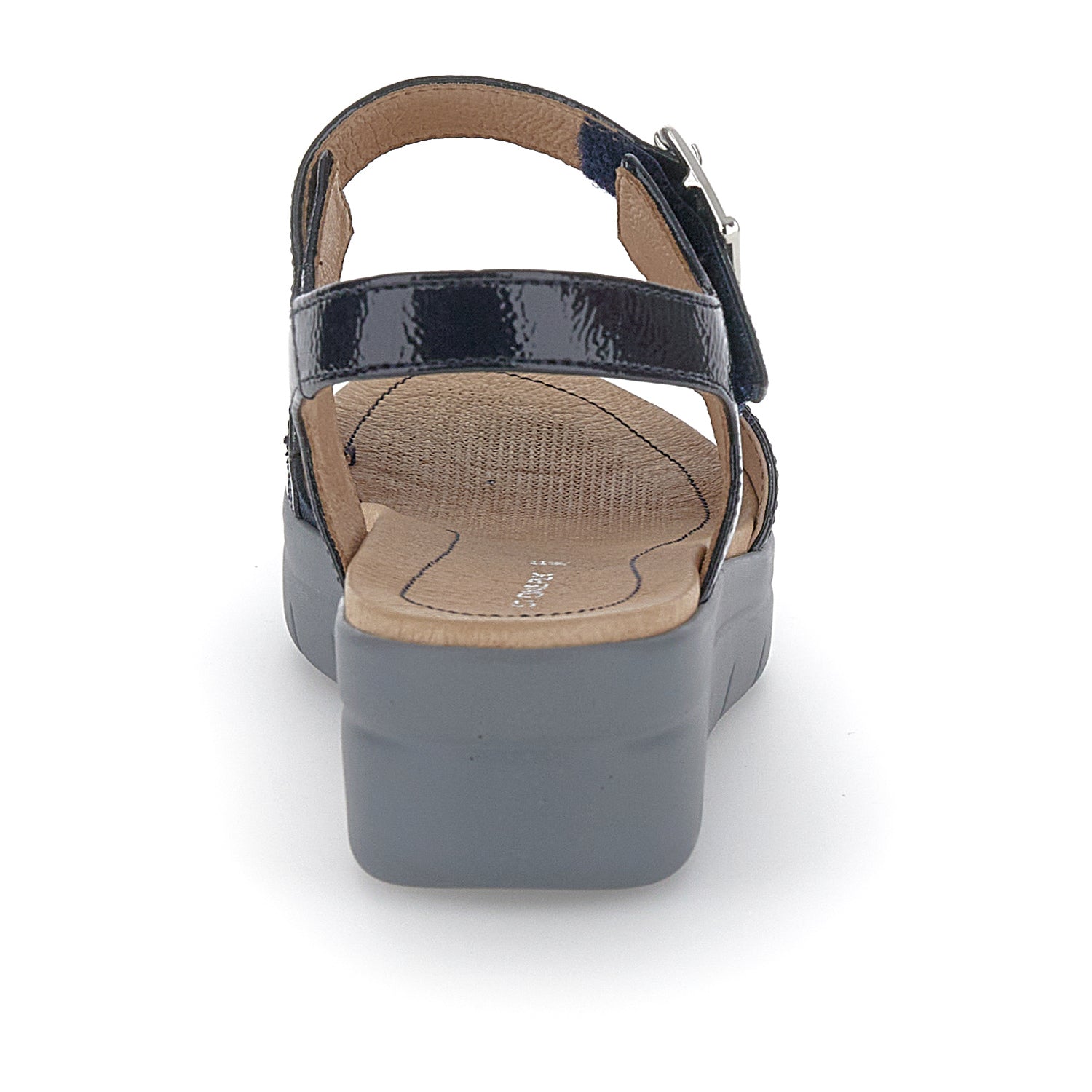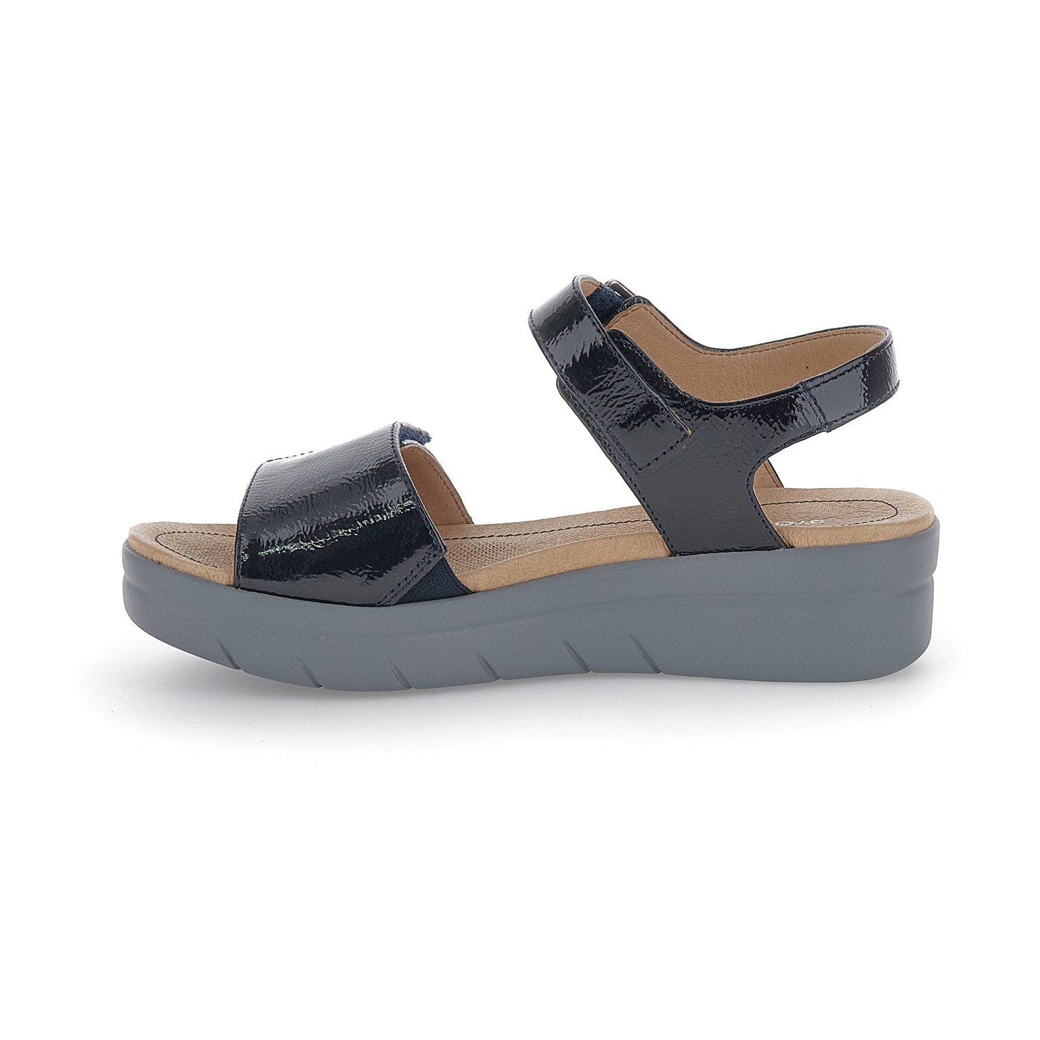 Sandalo con zeppa da donna in pelle naplack blu con vestibilità regular. Questo modello classico e sempre alla moda, con velcro regolabile per una calzata personalizzata, è comodo e leggero, perfetto per completare tutti i tuoi outfit casual chic. La tecnologia Blusoft® supporta la tua camminata garantendo massimo comfort e ammortizzazione. Suola in PU, altezza tacco (cm): 4.5.