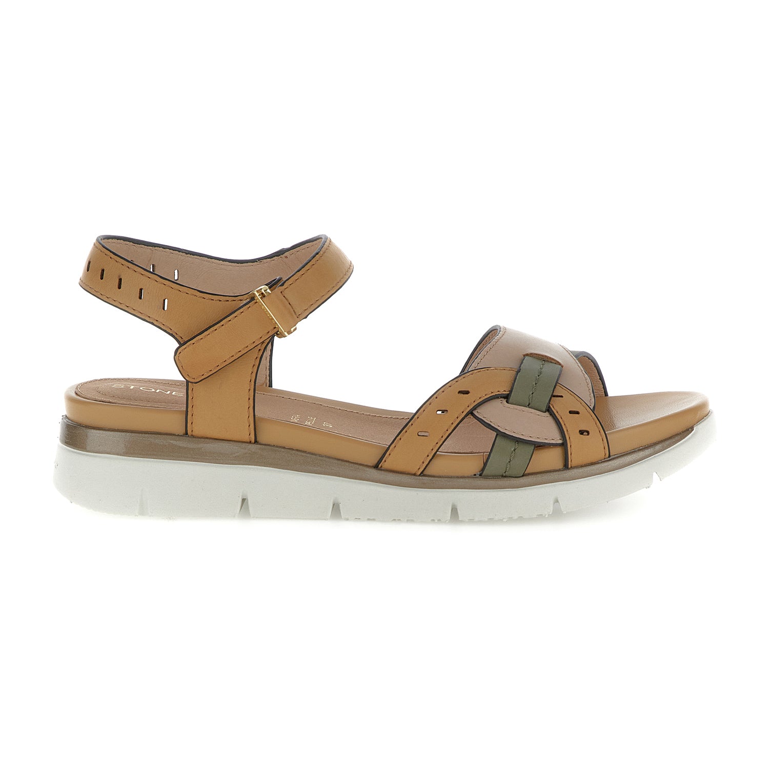 Sandalo senza tacco da donna in pelle marrone con vestibilità regular. Questo modello dal design alla moda, impreziosito dall'intreccio e dalla combinazione di toni caldi della tomaia, è un must-have per il tuo guardaroba, perfetto per essere abbinato a qualsiasi outfit estivo. La tecnologia Blusoft® supporta la tua camminata garantendo massimo comfort e ammortizzazione. Suola in EVA, altezza tacco (cm): 4.