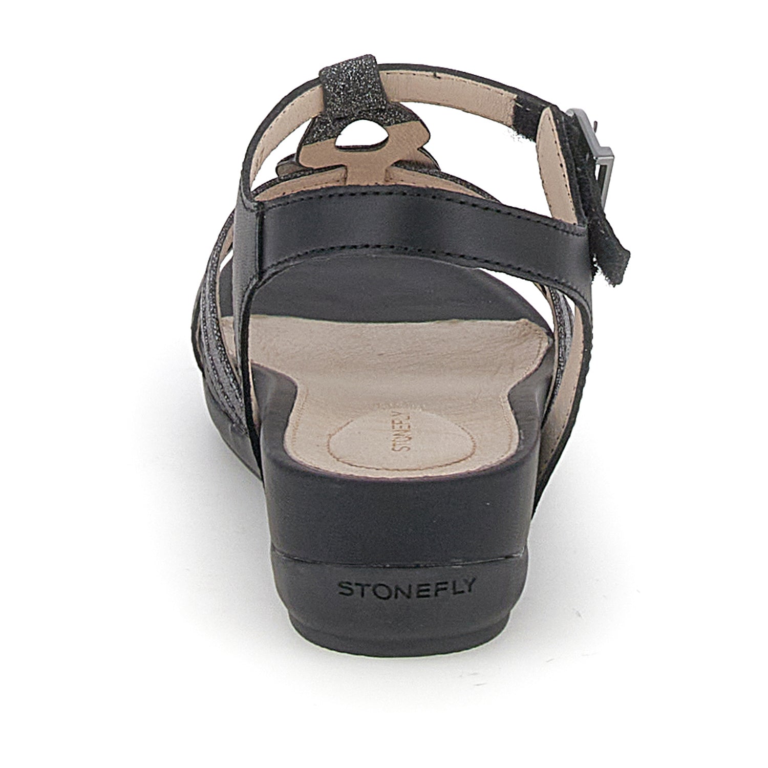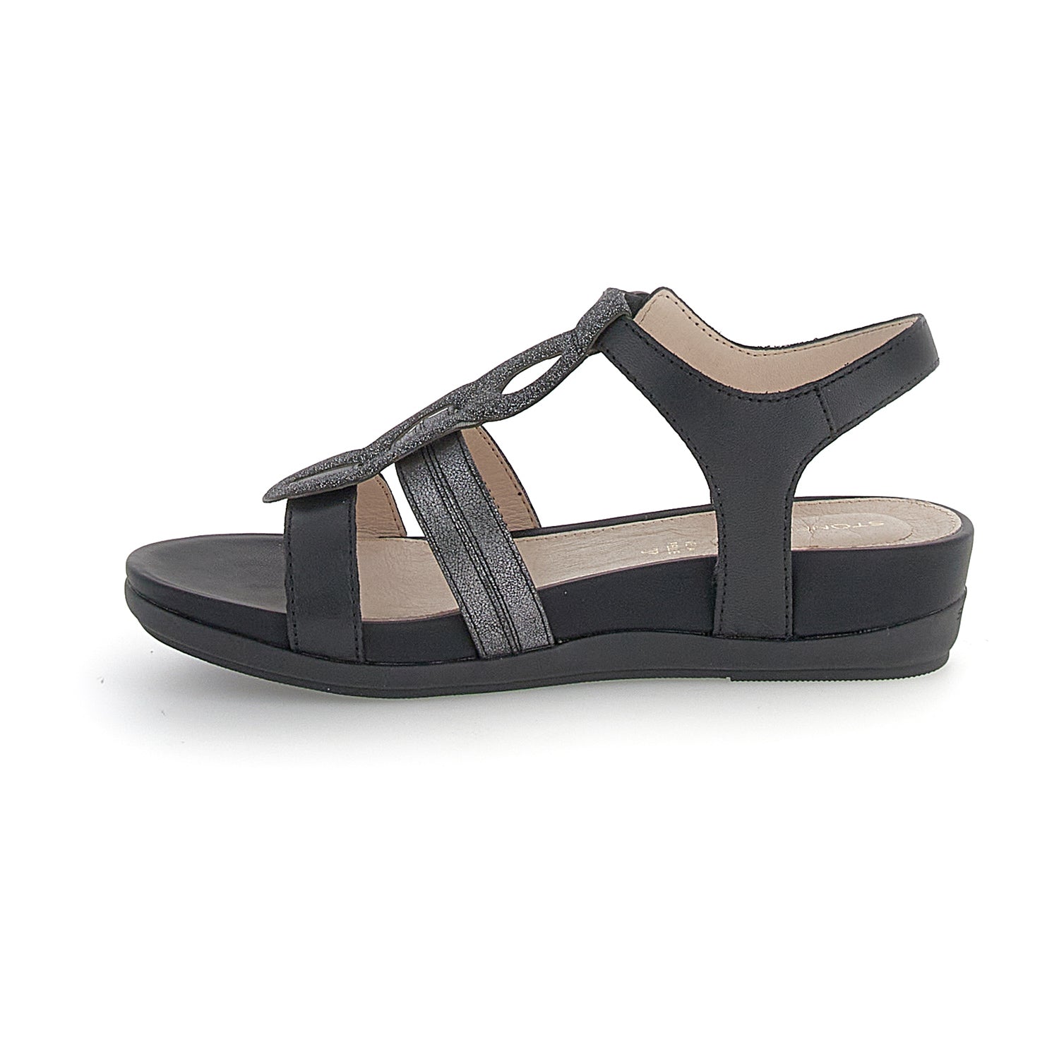 Sandalo con zeppa da donna in pelle nappa nera con vestibilità regular. Comfort e stile da abbinare ai tuoi outfit estivi grazie a questo modello con un design raffinato e alla moda, una tomaia incrociata ed un cinturino con chiusura a velcro. La tecnologia Blusoft® supporta la tua camminata garantendo massimo comfort e ammortizzazione. Suola in TPU, altezza tacco (cm): 4.