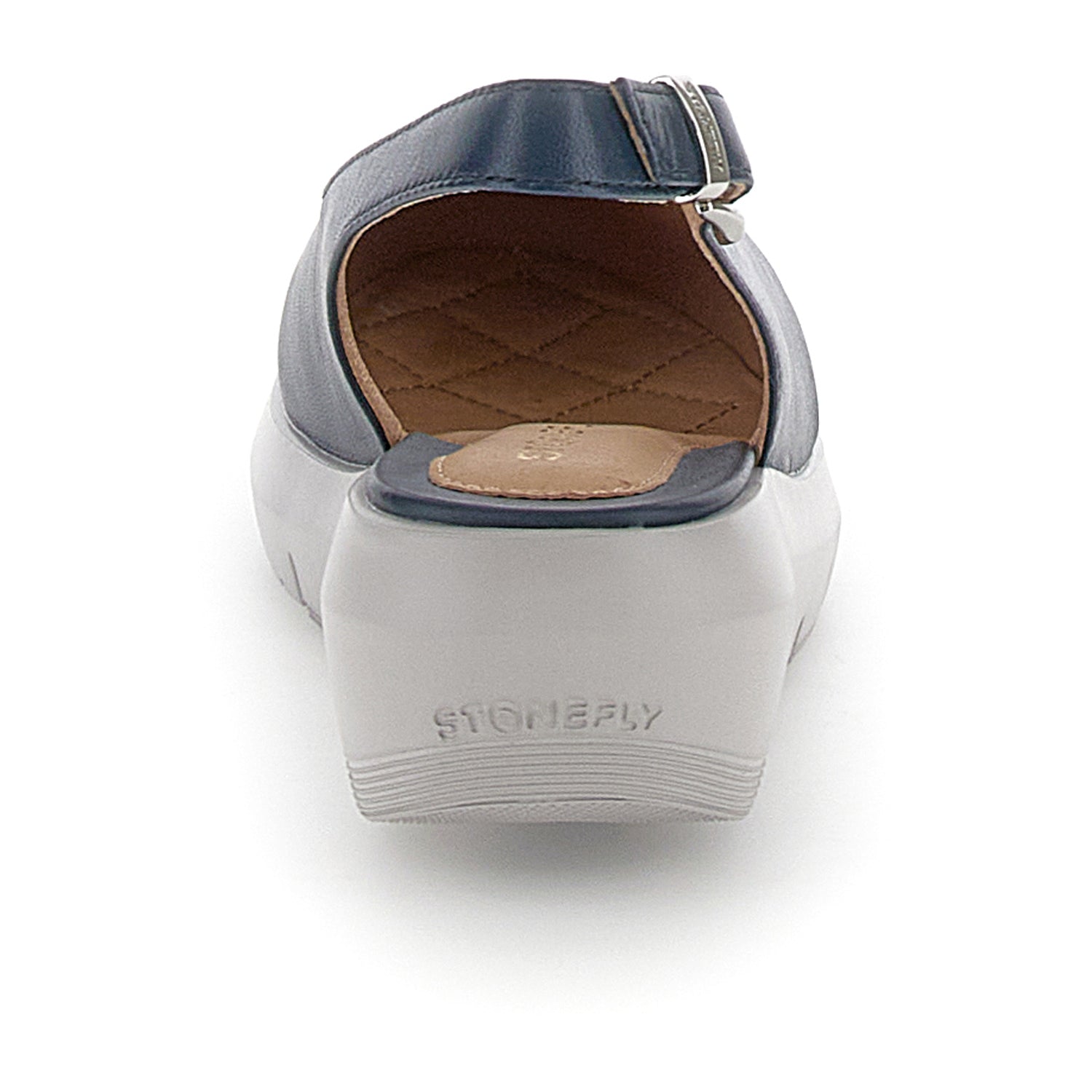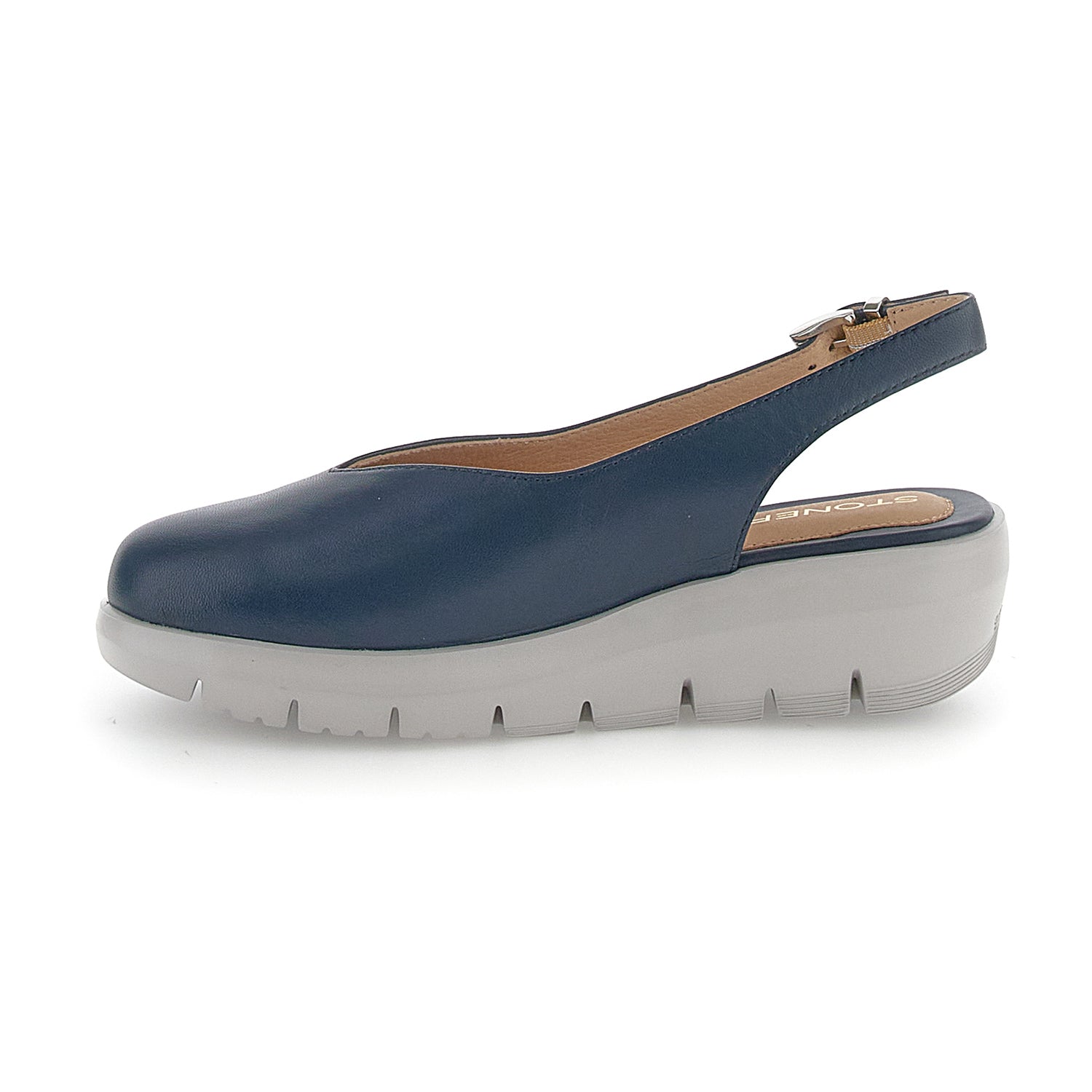 Sandalo con zeppa da donna in pelle lucida blu con vestibilità regular. Modello con tomaia dalle linee essenziali ed eleganti. Tutta la comodità della linea Plume abbinata ad un design di classe per uno stile impeccabile da indossare tutto il giorno. La tecnologia Blusoft® supporta la tua camminata garantendo massimo comfort e ammortizzazione. Suola in EVA, altezza tacco (cm): 4.5.
