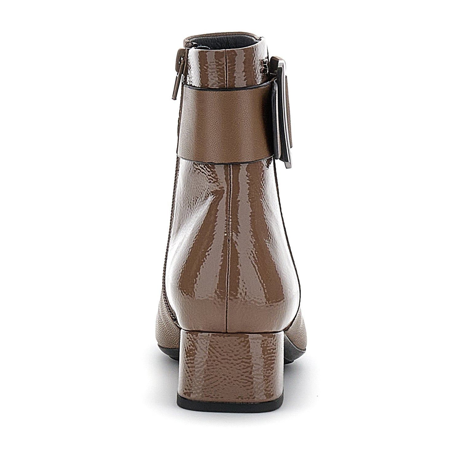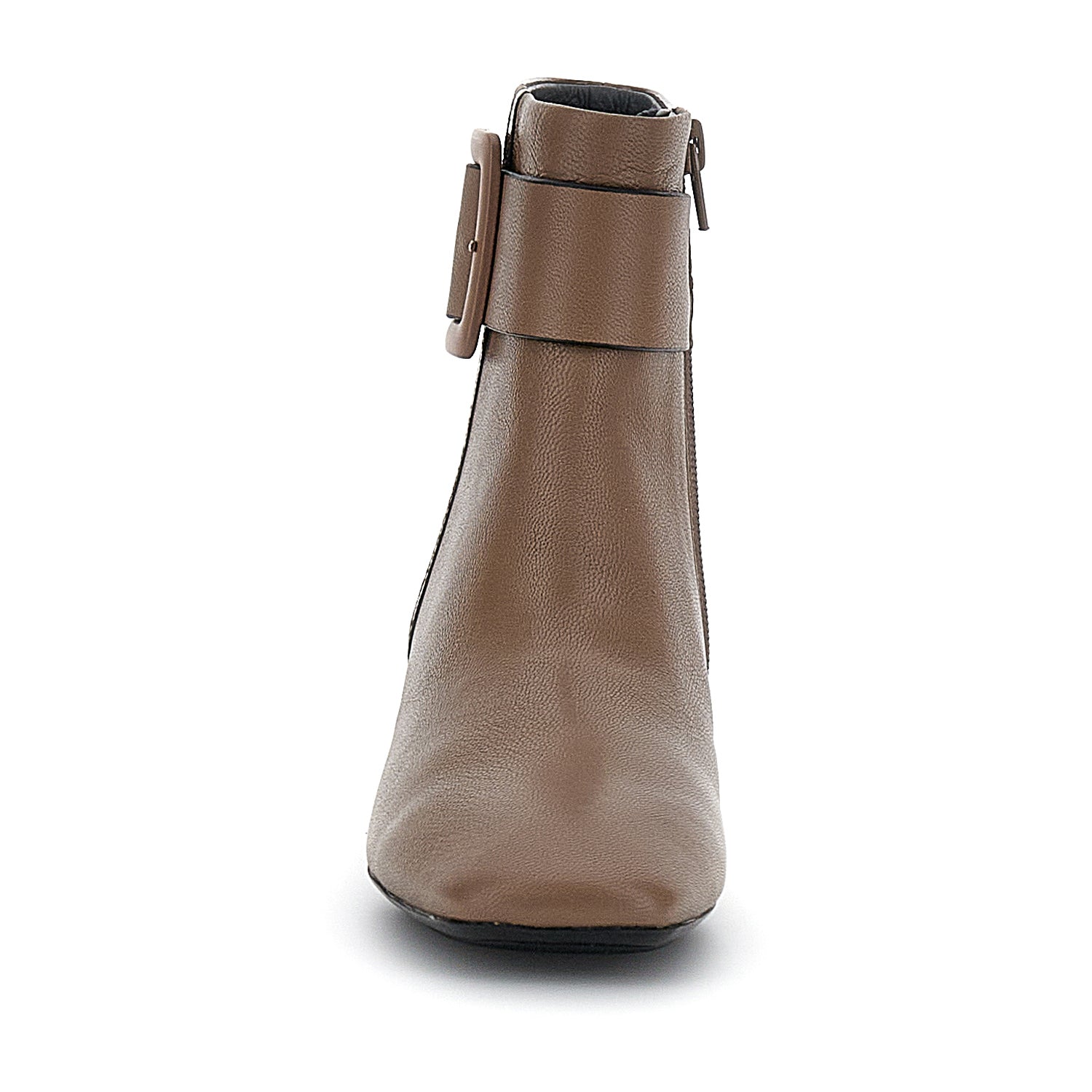 Stivaletto da donna in pelle marrone con vestibilità regular. Questa modello con il tacco dal look classico è arricchito dal dettaglio della fibbia bicolore. Il tacco basso e la punta leggermente squadrata completano un design raffinato e senza tempo. La tecnologia Blusoft® supporta la tua camminata garantendo massimo comfort e ammortizzazione. Suola in gomma, altezza tacco (cm): 4.